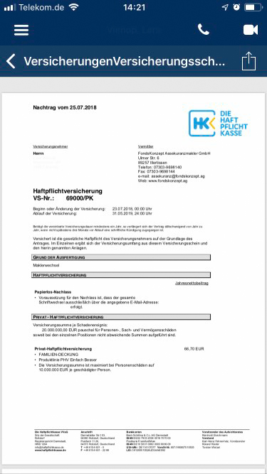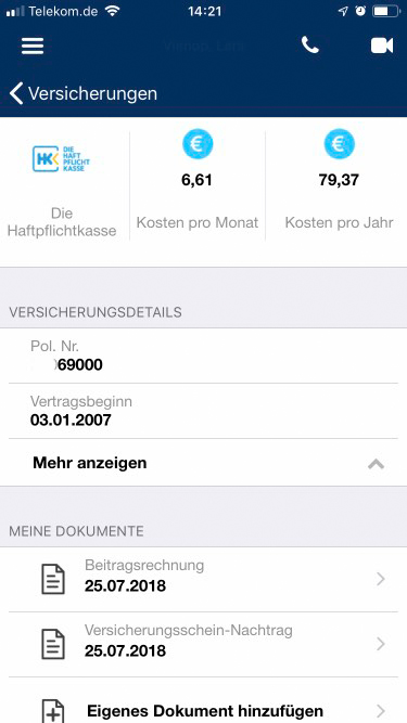 Eine Rechnungen suchen, für die Steuererklärung? Die Zahlweise eines Vertrages ändern, die neue Adresse mitteilen. Immer ein einfacher Kontakt zu Ihrem Versicherungsmakler, der sich kümmert. Über die app mit dem smartphone oder im Kundenservicecenter über den Browser des Rechners.